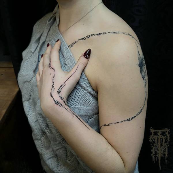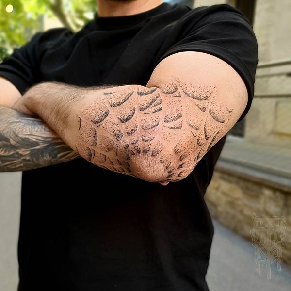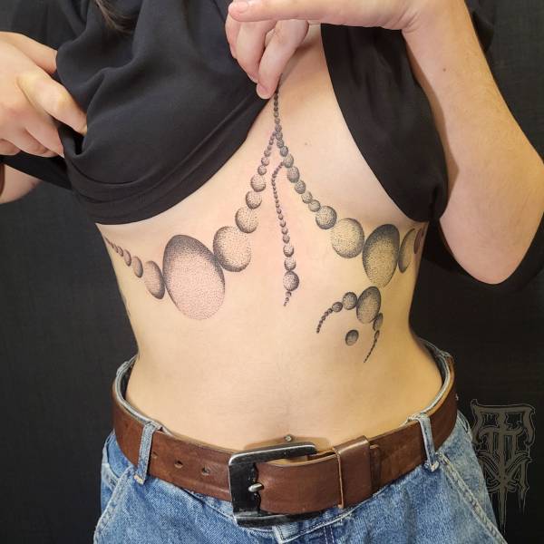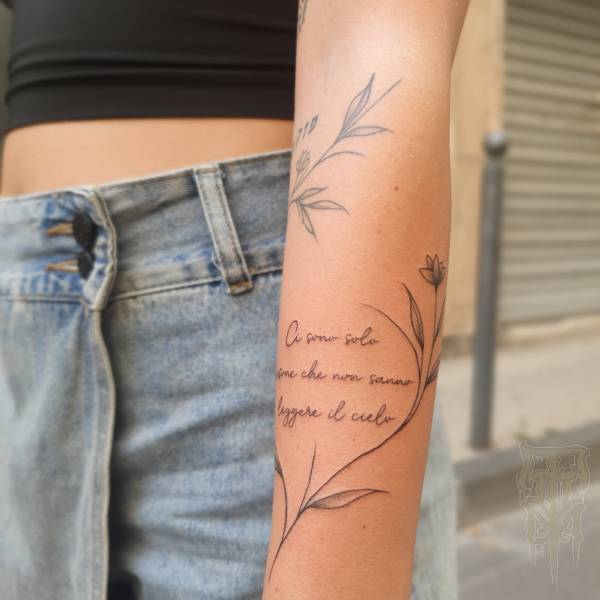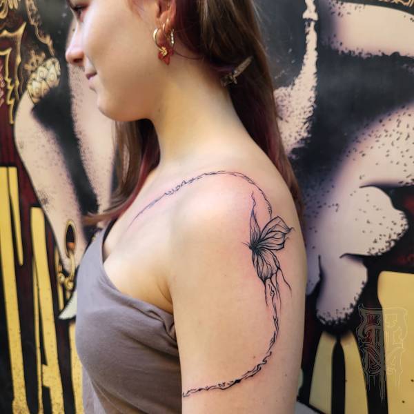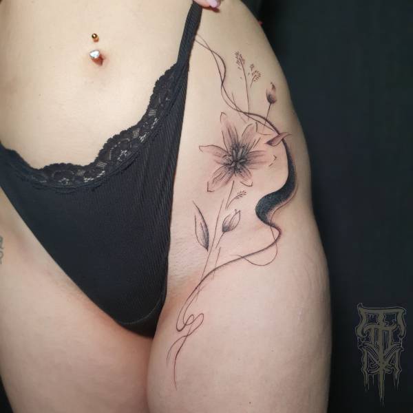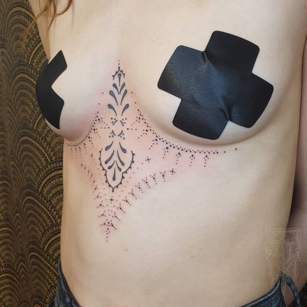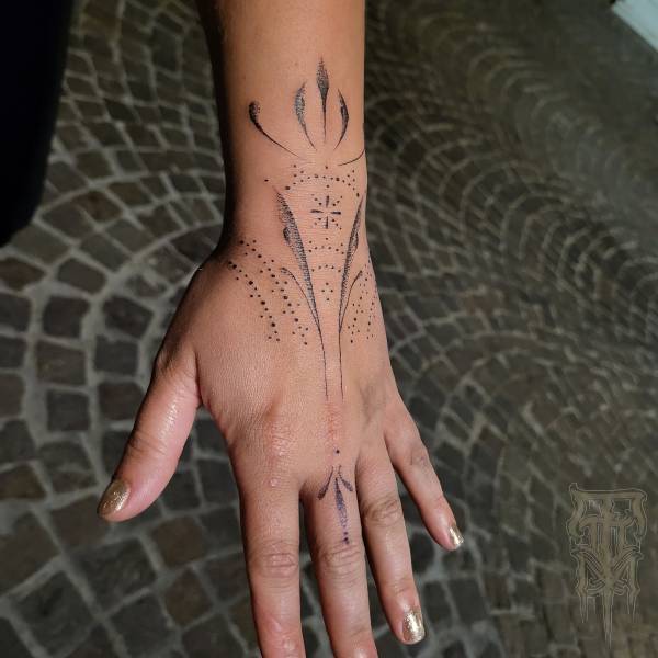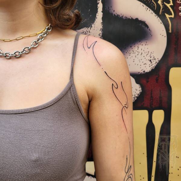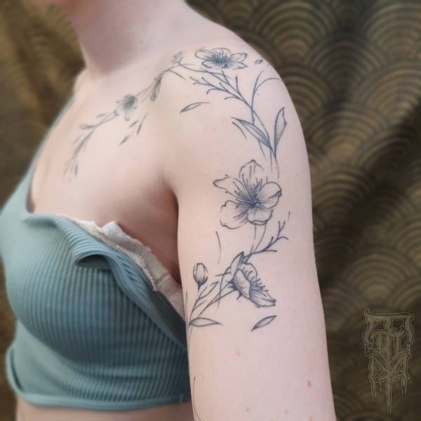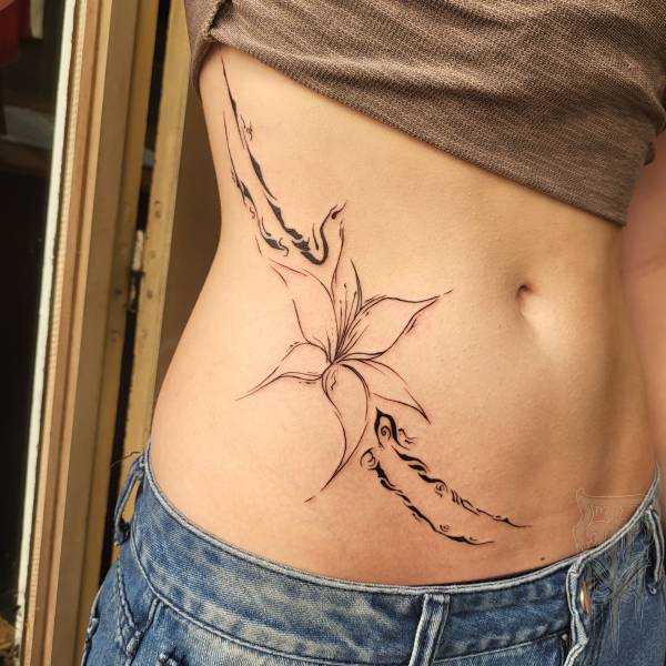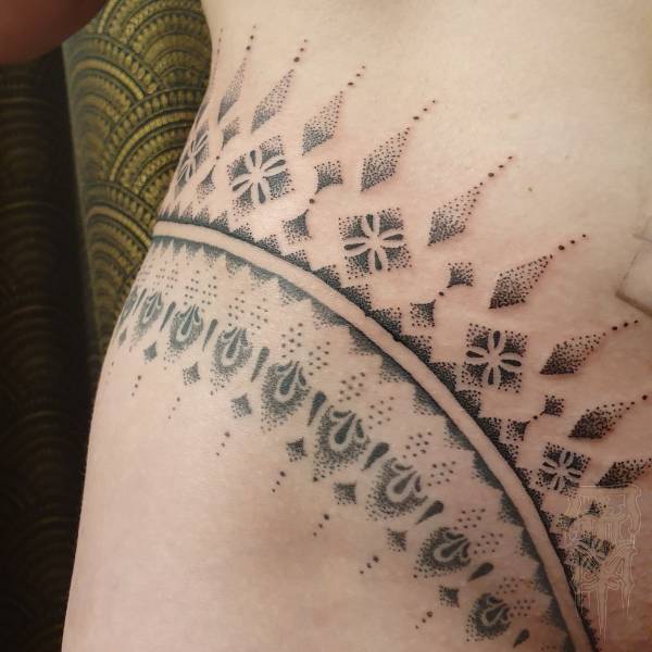 Flo perçoit le tatouage non seulement comme un art esthétique, mais aussi comme une pratique rituelle profondément ancrée dans l’histoire, servant autrefois de rite de passage ou de protection spirituelle. Ses techniques de prédilection, le dotwork (pointillisme) et le sketching (dessin spontané), lui permettent de jouer subtilement avec la lumière tout en conservant une esthétique à la fois brute et légère.